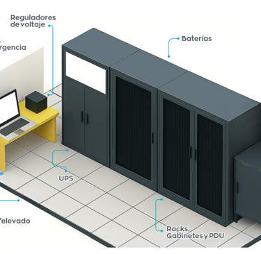 Equipos de energía de respaldo y distribución que protegen de cortes de energía, sobretensiones y descargas de rayos.